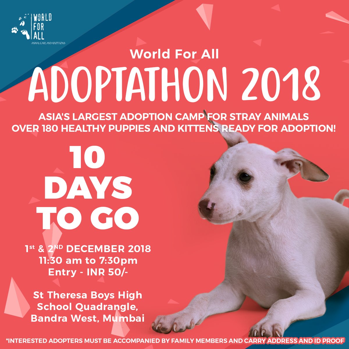 Worldforall On Twitter 3 Days To Go For Asia S Largest Adoption Camp For Stray Animals You Ll Have A Chance To Mingle And Fall In Love With 180 Wagging Tails And Purrs This Renowned director vikas bahl, along with his wife richa organised a pet adoption drive, named 'adoptathon' on sunday, november 26.