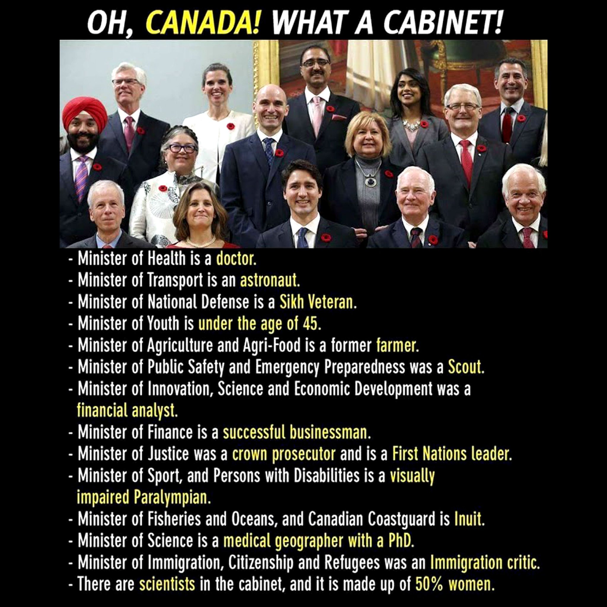 Canada Cabinet Ministers List And Their Qualifications : Half of them are below the age of 55.