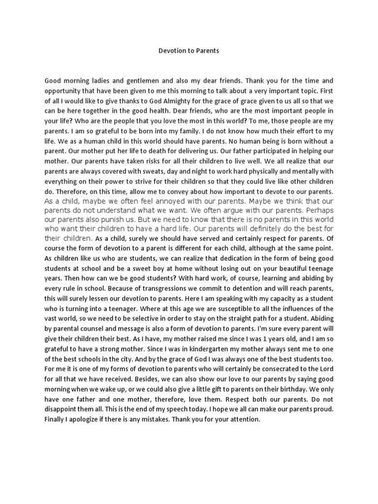 Devotion To Parents / The strong love that you show when you p.: