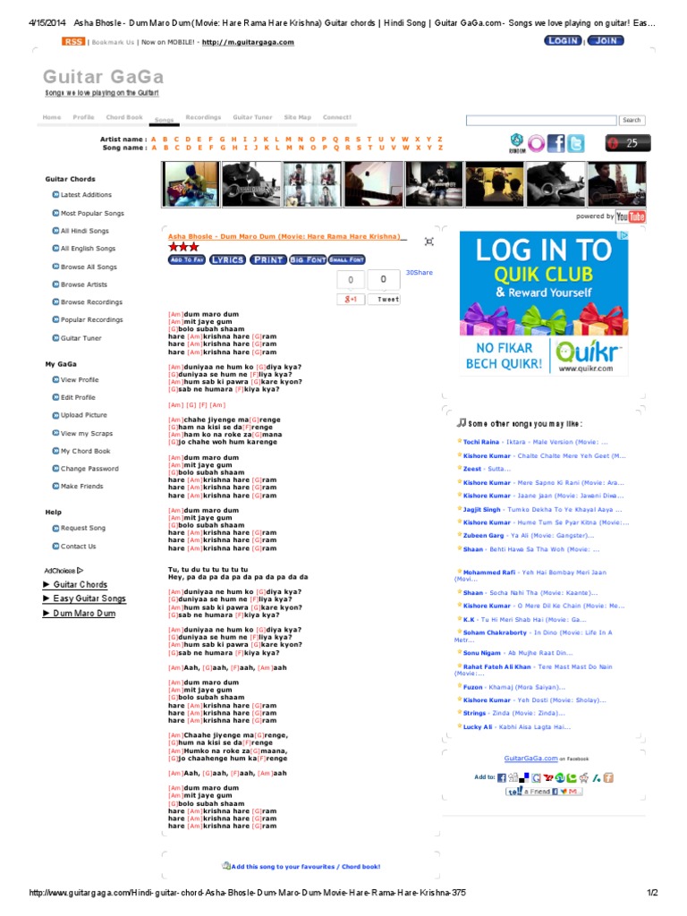 Dum Maro Dum Chords - Dum dum chords by virgulóides.
