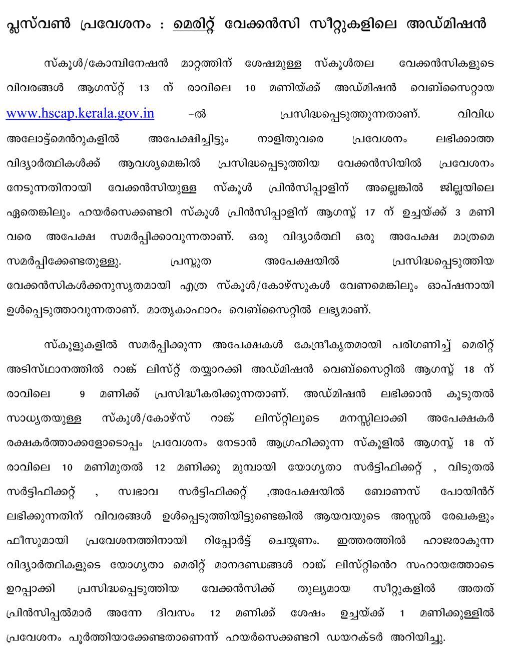 Hscap Result 2015 : Hscap plus one second allotment result 2017 has officially been released at www.hscap.kerala.gov.in.