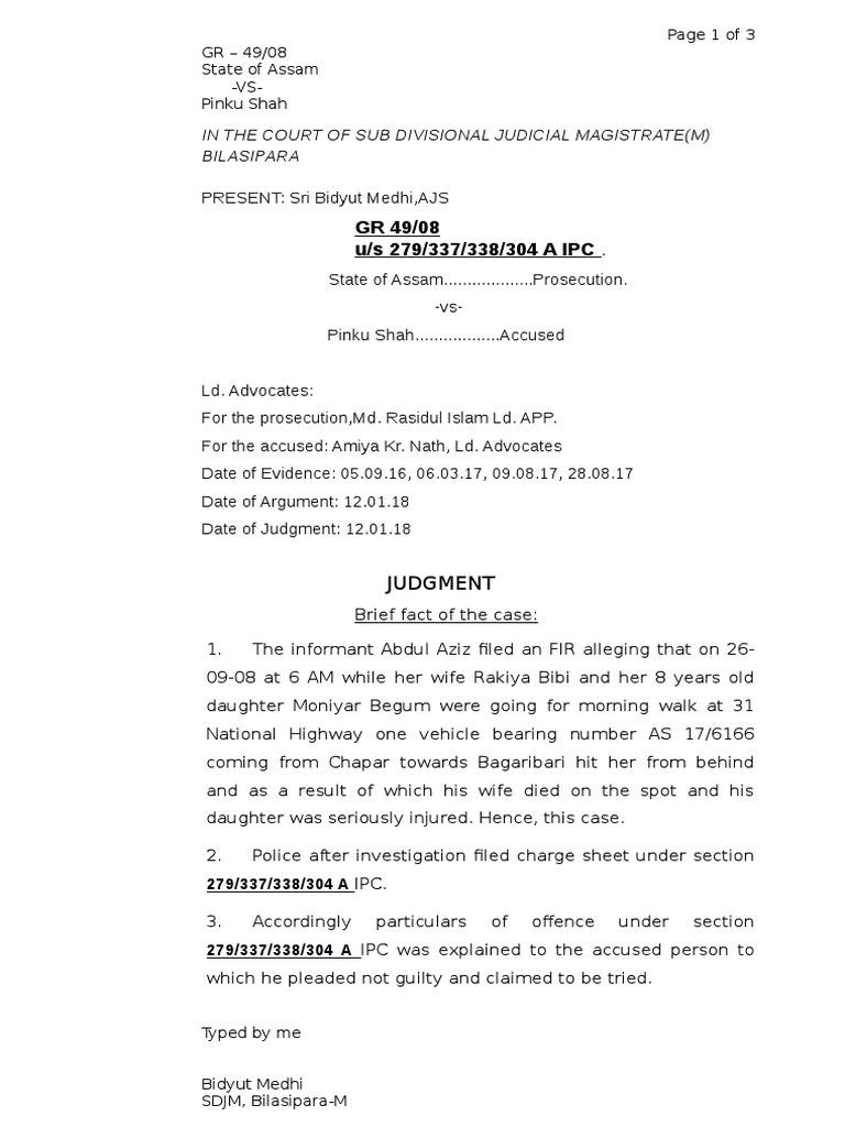 Ipc 279 338 - When the accident occurred i took that victim to the local hospital & gave all the medical attention needed.