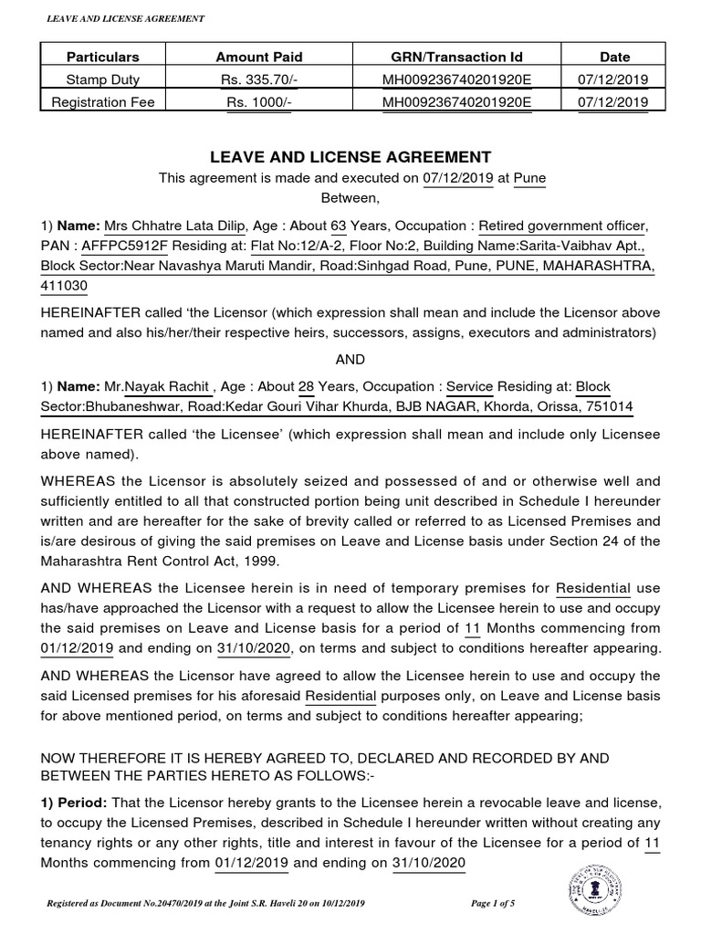 Leave And License Agreement Registration Charges / However, we bypass registering the agreement due to the comparatively high cost of stamp duties.