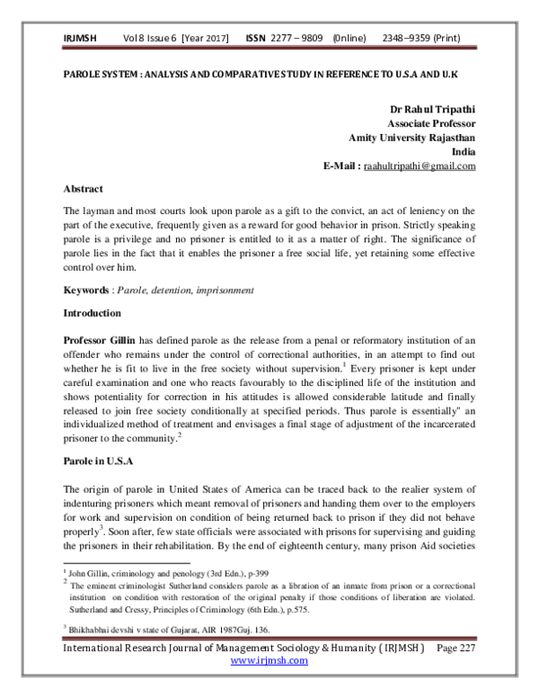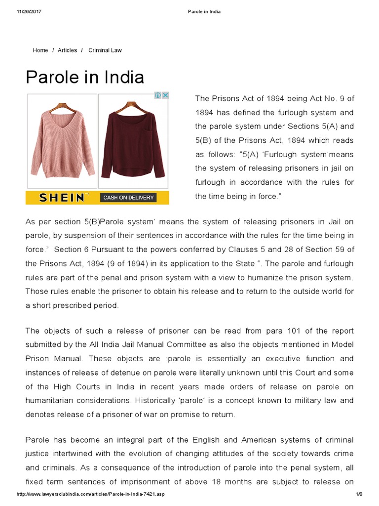 Parole Opportunity Mis Used Often Parole Cases In India In india, parole (as well as furlough) are covered under the prisons act of 1894.
