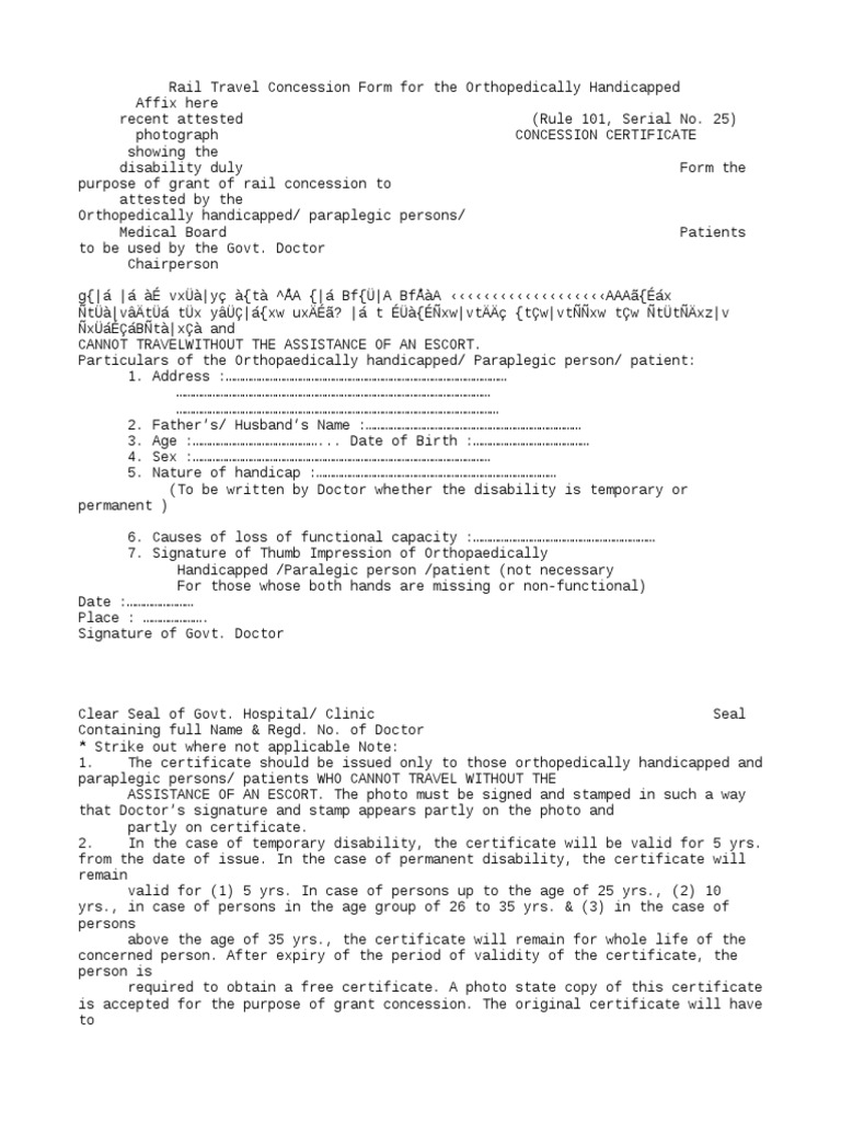 Irctc Physically Handicapped E Ticket Booking Fare Concession Process Entitlement for passes to handicapped wards of retired railway employees.