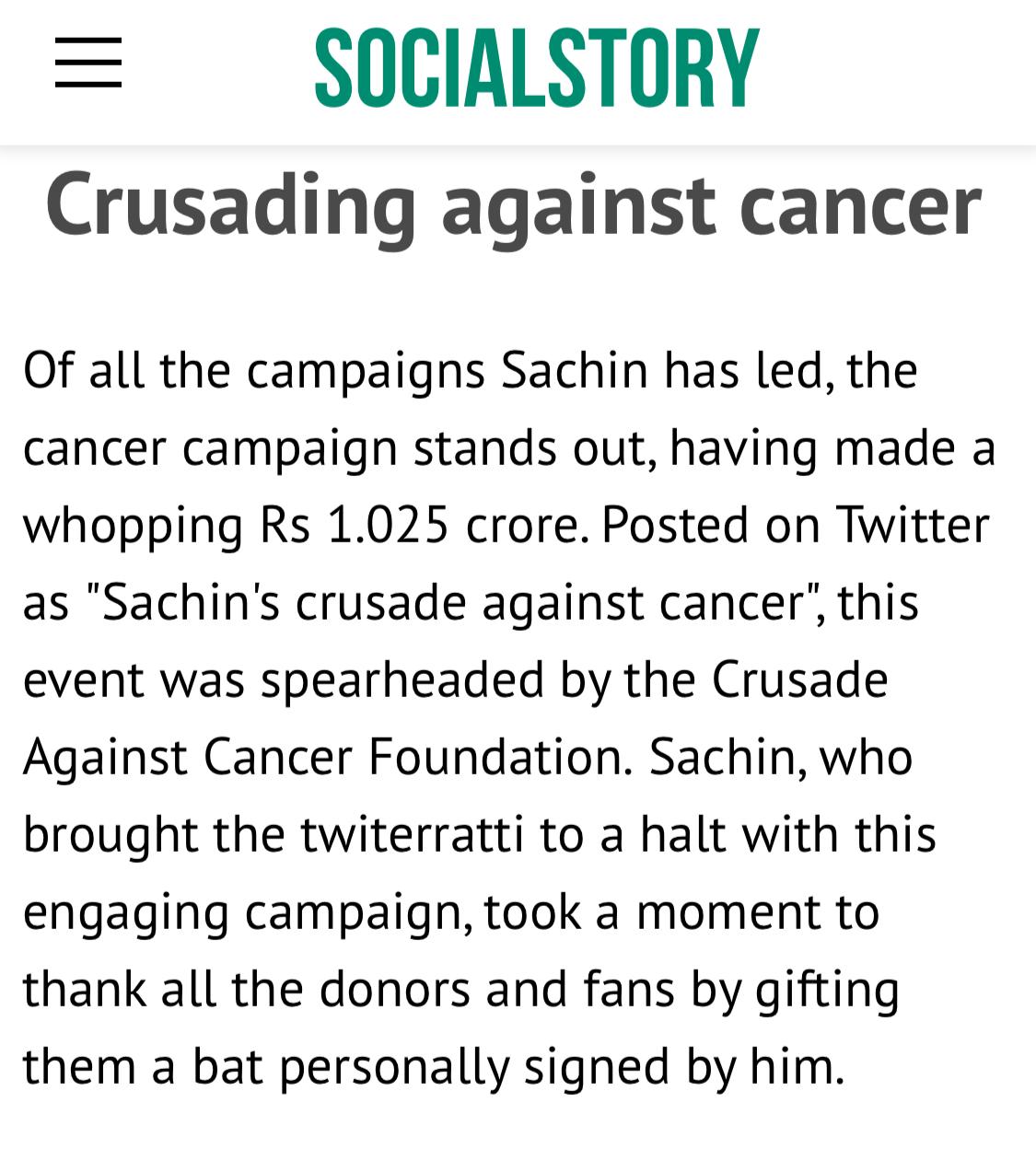 Sachin Tendulkar Cancer Foundation - His contribution to my life cannot be captured in words.